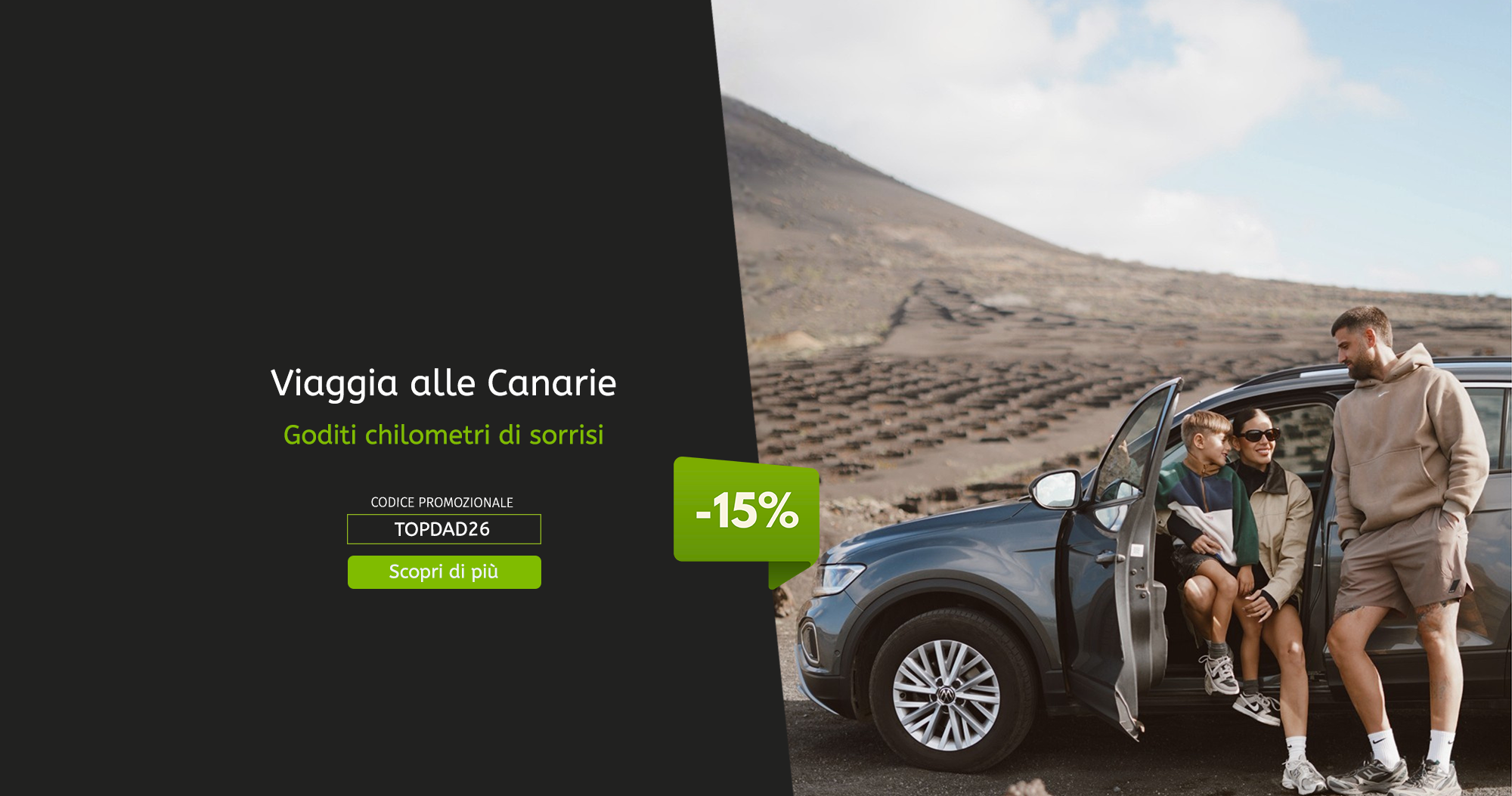 Da più di 40 anni TopCar ispira i viaggiatori e li aiuta a scoprire le Isole Canarie liberamente e comodamente, offrendo loro la tranquillità e la sicurezza di prenotare il loro veicolo con una compagnia di autonoleggio affidabile, i cui valori tradizionali sono l'onestà e il servizio al cliente. L'attenzione e la professionalità del team di TopCar, le tariffe molto competitive, la trasparenza dei suoi prezzi senza costi occulti, e una grande e moderna flotta di veicoli, ci danno la possibilità di ideare esperienze uniche e personalizzate per ogni cliente.